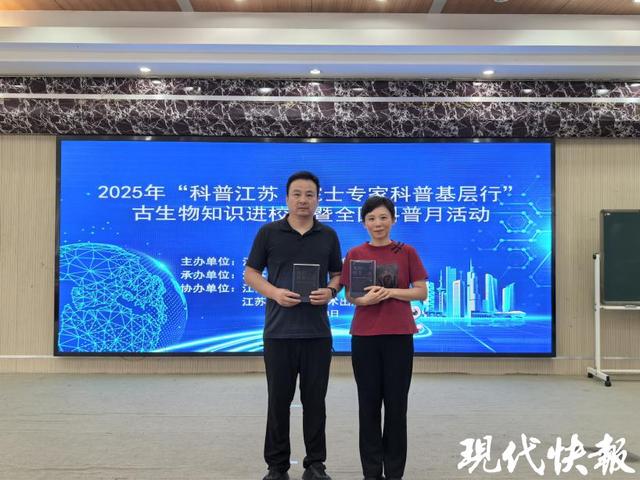 现代快报讯(记者 李鸣)9月18日下午,“古生物知识进校园——科普江苏·院士专家科普基层行”系列活动走进南京市双塘小学。该活动由江苏省科学技术协会、江苏省科学传播中心、江苏省古生物学会、江苏凤凰科学技术出版社共同组织举办,中国科学院南京地质古生物研究所研究员蔡悦为110名学生作《地质工程拯救地球,与天斗其乐无穷》科普讲座。