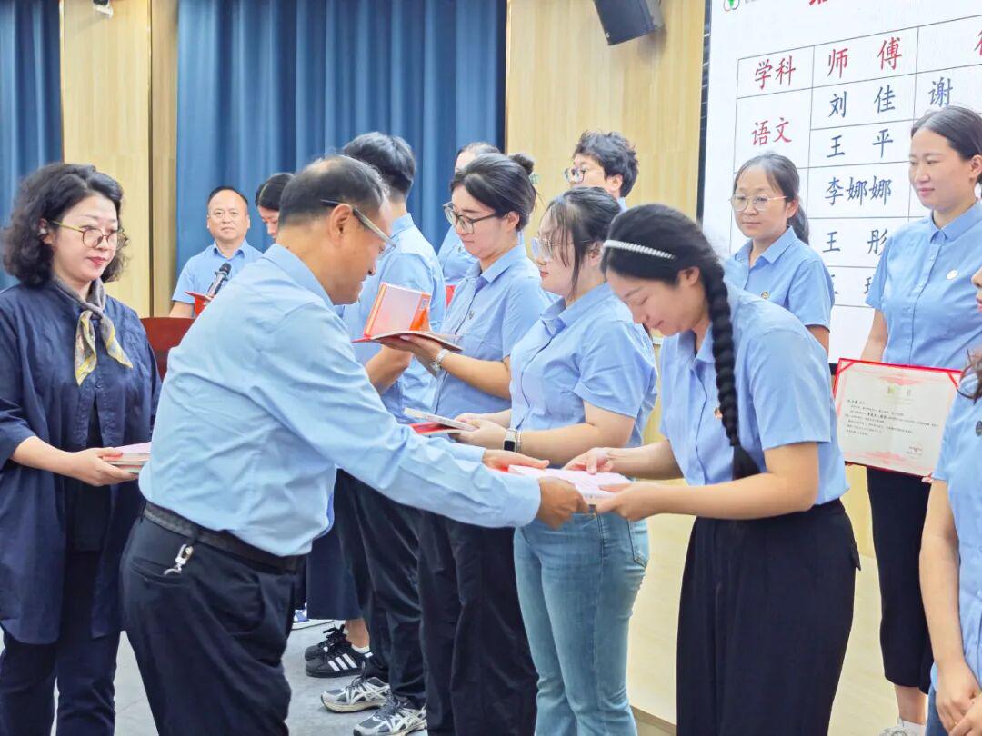 随后,青蓝工程师徒结对仪式进入关键环节,学科与班主任师徒共五组,有序登台完成结对流程。