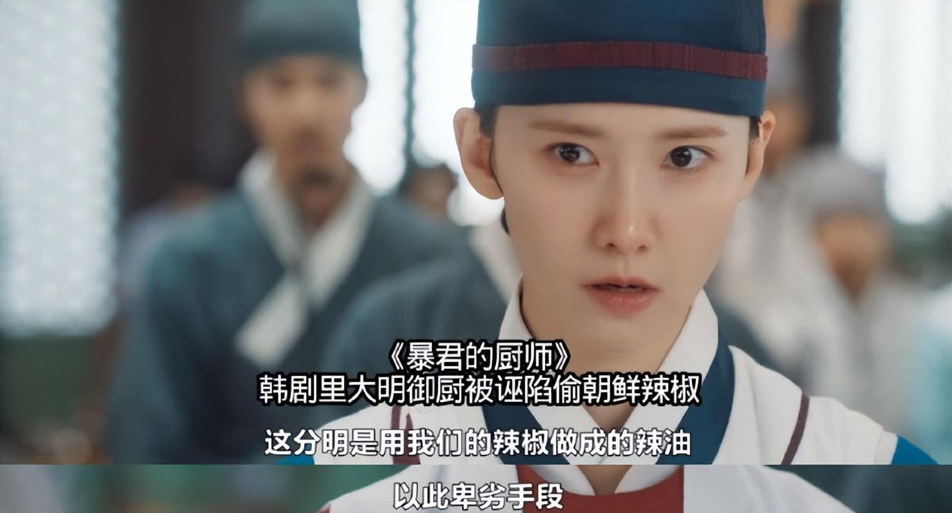 《暴君的厨师》中女主林允儿扮演的角色怒斥大明厨师手段鄙劣,偷了韩国的辣椒油。燕山君也表示“无论厨艺多么高超,得先学会做人的基本道理”,把明朝厨师塑造成一个卑鄙小人。