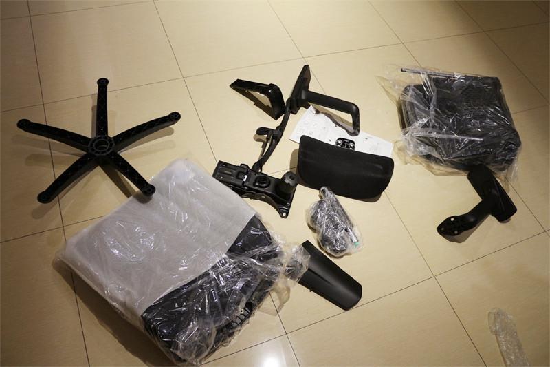 实测中,即使经历暴力快递,所有部件仍完好无损。安装过程简单高效,卡扣精准、孔位对齐,底盘与气压杆衔接严丝合缝,按压时“咔嗒”声清脆,安全感十足。个人建议安装的适合将椅子放置在纸箱上安装,这样比较容易组装,全程无需复杂工具,自带的扳手即可完成组装,20分钟内可独立完成。