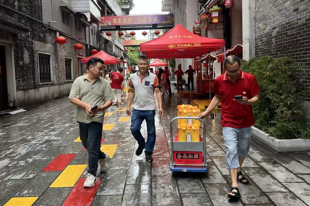 江南大学原副校长、博士生导师徐岩、中国酒业协会副秘书长甘权、广东省酒类行业协会会长彭洪、华南理工大学教授赵海锋、广东省食文化副会长、中国烹饪大师江欣灿等一众嘉宾与广东石湾酒厂集团董事长、陈太吉酒庄庄主范绍辉一同在朱紫街敲响“金锣”,以盛大的仪式喜迎四方宾客,开启欢乐盛宴。今年,石湾酒厂集团再度豪掷千万元代金券,真情回馈广大粉丝。消费者可凭券于9月20日至21日每天13:00-21:00,在朱紫街宠粉集市摊位上购酒,凭券最高享五折福利。
