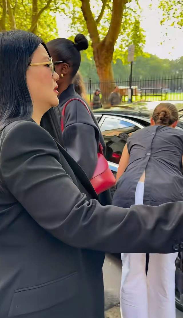 李湘今日身着黑色西装,依旧是标准的黑长直发型,戴着墨镜拎着手包霸气全开,她手上佩戴着钻石戒指,脖子上佩戴着两层珍珠项链,看着很是雍容华贵。