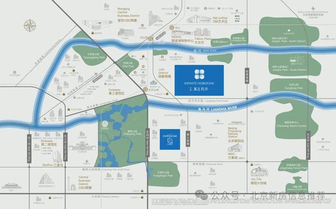 与国贸、望京两大商务中心连线“中芯同轴”,国际交往的中国门户,距离第三使馆区直线约2.5公里,成为国际菁英对话世界的舞台。