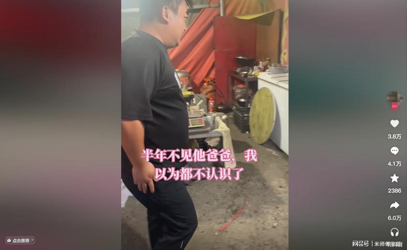 女子老公挺着大大的啤酒肚往家走,这么久没见家人,当时他的神情还是很期待的。