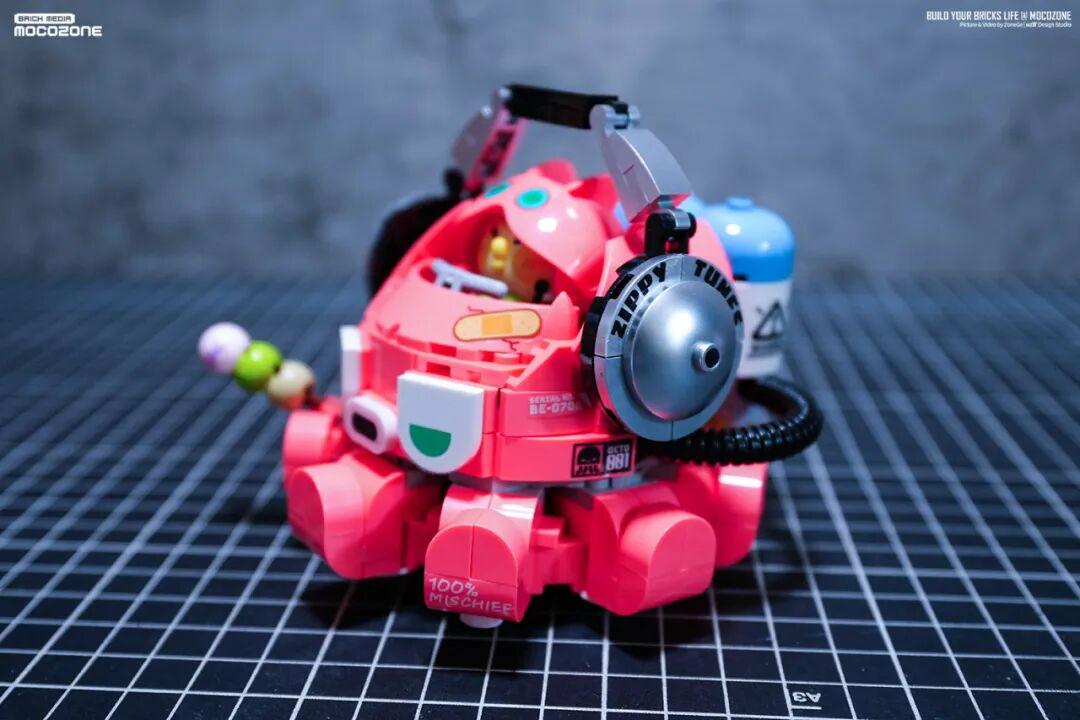 这款香蕉造型的摩托,第一眼不太能看的出来是香蕉,但我和你说了是香蕉后呢,你就一下能想到其黄颜色以及弯曲的造型就还是比较有趣的外观还原,而在玩法上,也是用了一个我自己觉得超级巧妙的方式来实现一个互动结构。上面的视频里有演示,可以看看哈。