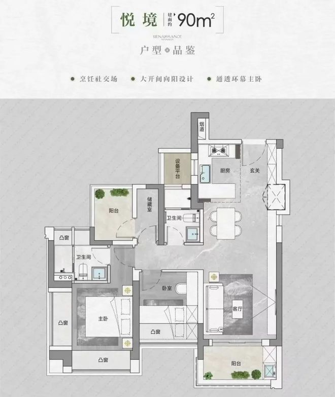得房率高:作为新规项目,通过设备平台、双阳台、飘窗等赠送设计,实现平均 94%-96% 的得房率(含赠送),空间利用合理,摊薄了实际购房成本。