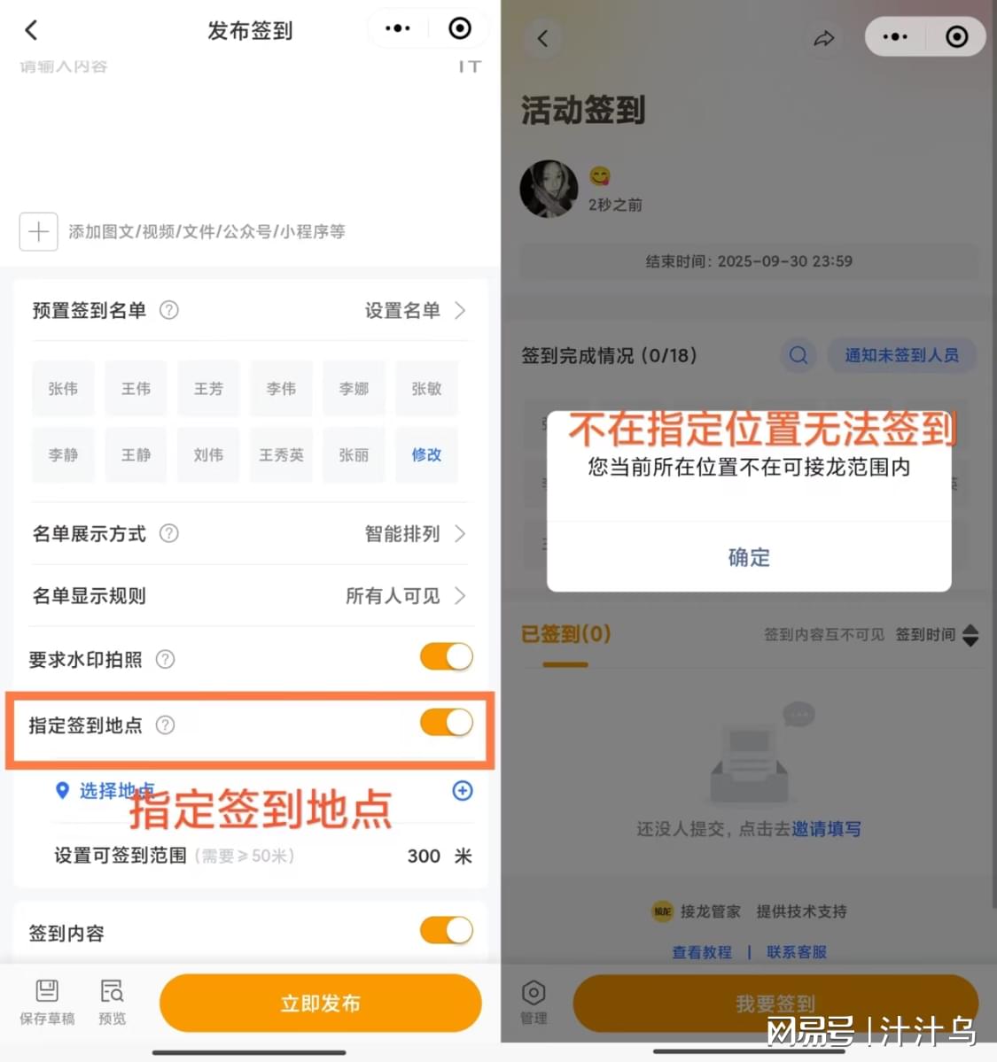 设置签到地点,成员得到指定位置才能签,没法找人代签。