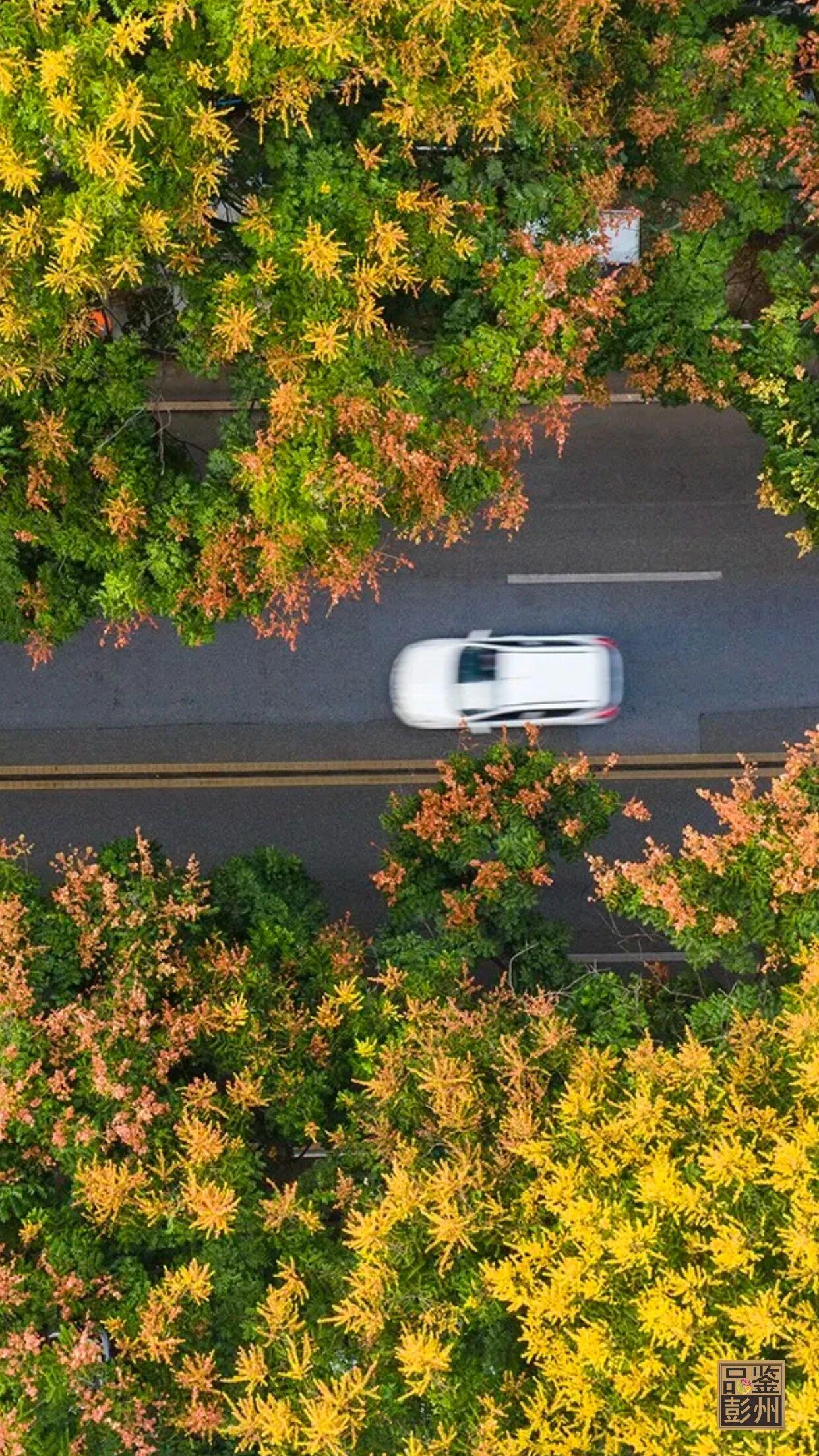 路两旁参天的梧桐树,将被染成灿烂又温暖的颜色,阳光透过细密的枝叶,洒下斑驳的光影,好像一条穿越时光的隧道。她们所见证和守护的,或许是这里曾经的故事,直到后人沿着历史的脉络,读懂了她的诗意,彭州也就随之来到了秋天最美的时刻。