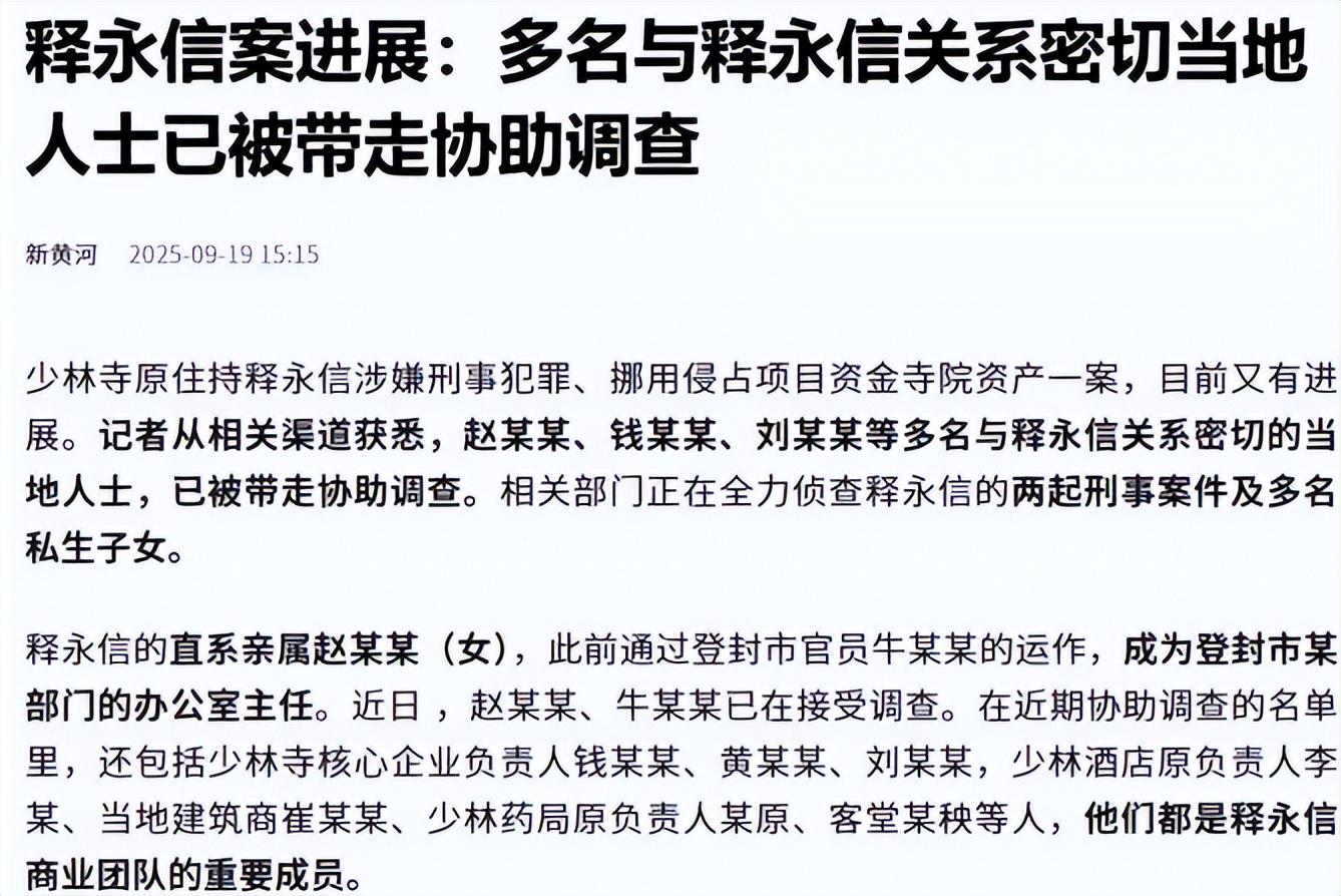 赵、钱、刘在内的,平时和释永信私交比较好当地人事已经在被调查了。
