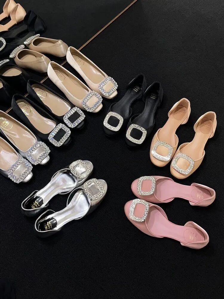 水钻方扣小单鞋,方扣的包边做成弧形,更显温柔,加上水钻,真像给脚配了打光板,贼公主!