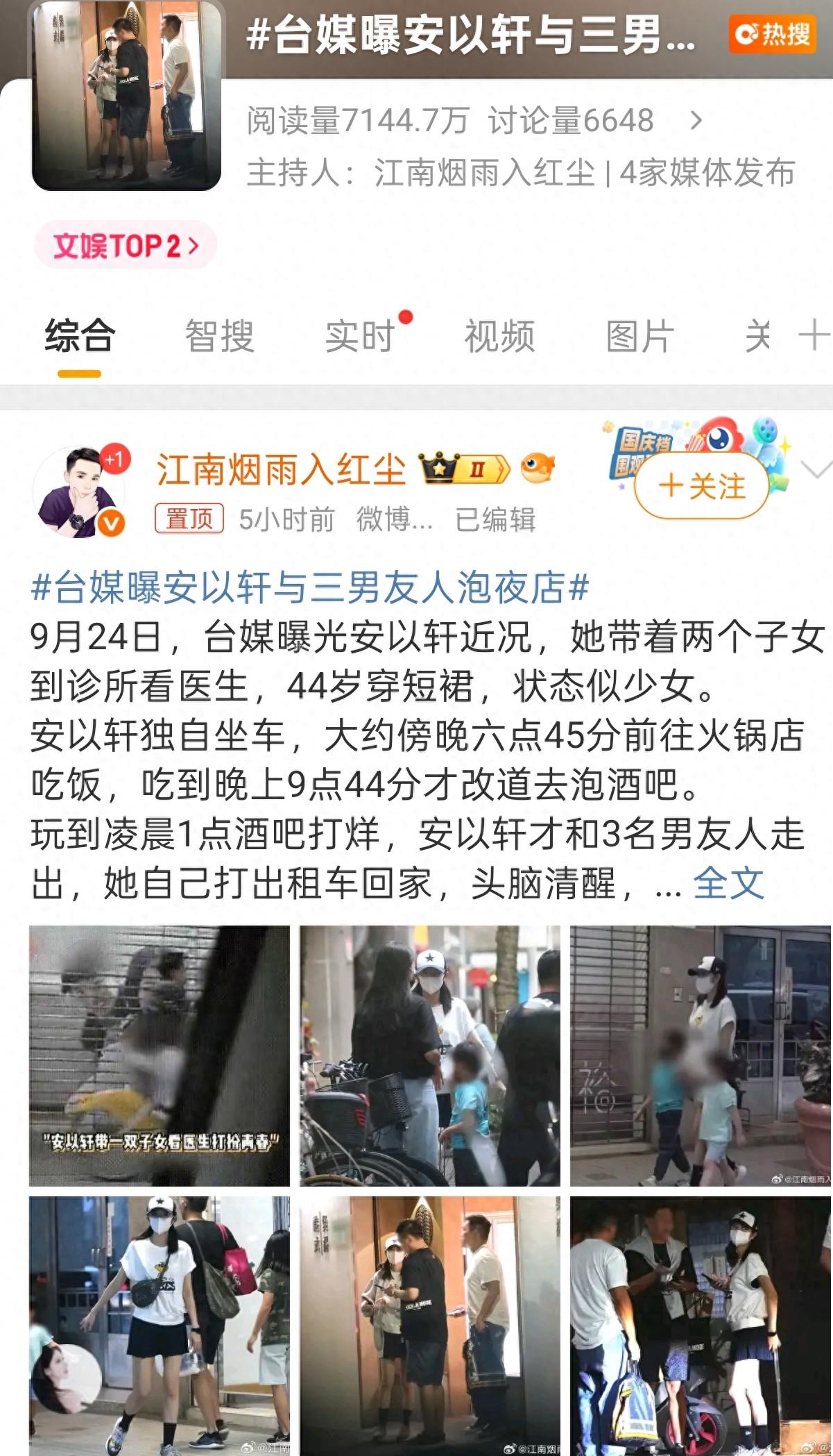 9月24日,许久没有上过热搜的安以轩,突然登上了热搜,上热搜的词条还十分不友好,狗仔说她深夜在酒吧夜会男性友人,还和男性友人玩到凌晨一点多酒吧打烊才出来,引起了众多网友的热议。