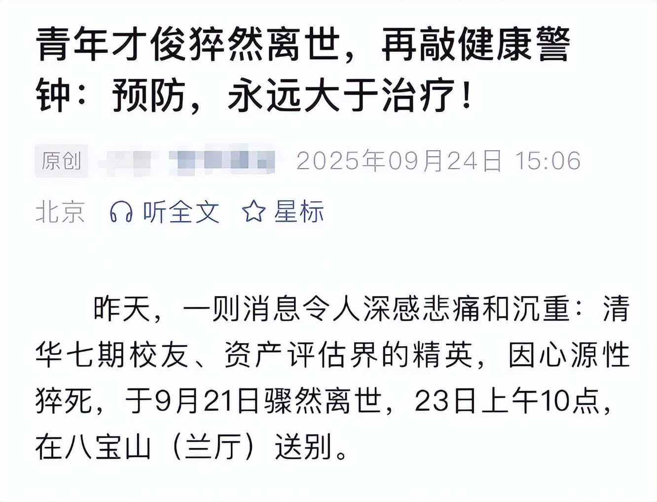 清华七期的同学得知张卫东去世的消息后,还发布了一篇长文悼念,其标题写着“青年才俊猝然离世,再敲健康警钟,预防,永远大于治疗。”
