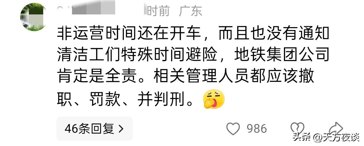 现在省里虽说接手调查了,说60天内出报告,但大家要的不只是一张纸。受伤的师傅还在医院遭罪,三个没了亲人的家庭等着公道,更有好多坐地铁的人在担心:连深夜干活的保洁员都保护不了,我们平时坐车能安全吗?