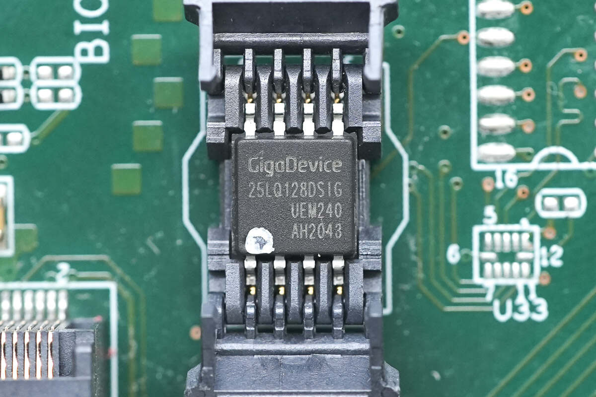 CPU下方有一颗来自GigaDevice兆易创新NOR Flash,型号GD25LQ128D,容量16Kb,采用SOP8封装,用于存储BIOS信息。