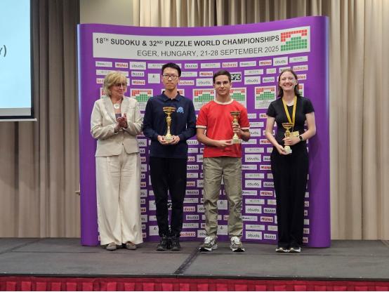 第十八届世界数独锦标赛于2025年9月22日上午九点在匈牙利埃格尔市花园酒店开赛,经过两天的激烈争夺,个人比赛和团体比赛于23日下午四点全部结束,在个人比赛中,中国有五名选手进入了前十名,创造了数独世锦赛历史上的纪录。其中A队队员中,戴潭潭、胡宇轩、明乐天、孙彻然分别排在第一名、第三名、第四名和第六名,中国B队队员邱苏喆发挥出色,继去年世锦赛排名第二名之后,今年再次排在第二名,是名副其实的黑马选手,假以时日,未来也将是中国的希望之星。