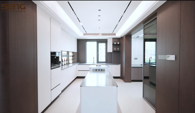 森歌不锈钢定制家居为一对年轻夫妇打造的婚房案例颇具代表性。整体采用了象牙白不锈钢门板,搭配创新的背墙系统,整个空间显得明亮又通透。西厨区域的中岛台设计,充分兼顾了操作的便利性;中厨运用了年轻人青睐的日式收纳,通过隐藏式收纳设计,保持了视觉上的整洁有序,高低错落的收纳设计严格遵循人体工学原理,有效中和了金属材质带来的冷硬质感。占地25㎡的中西厨大空间中,厨具碰撞发出的清脆声响与人们的欢声笑语相互交织,厨房彻底告别了以往孤独劳作的单一形象,而是成为情感交流与传递的社交中心。