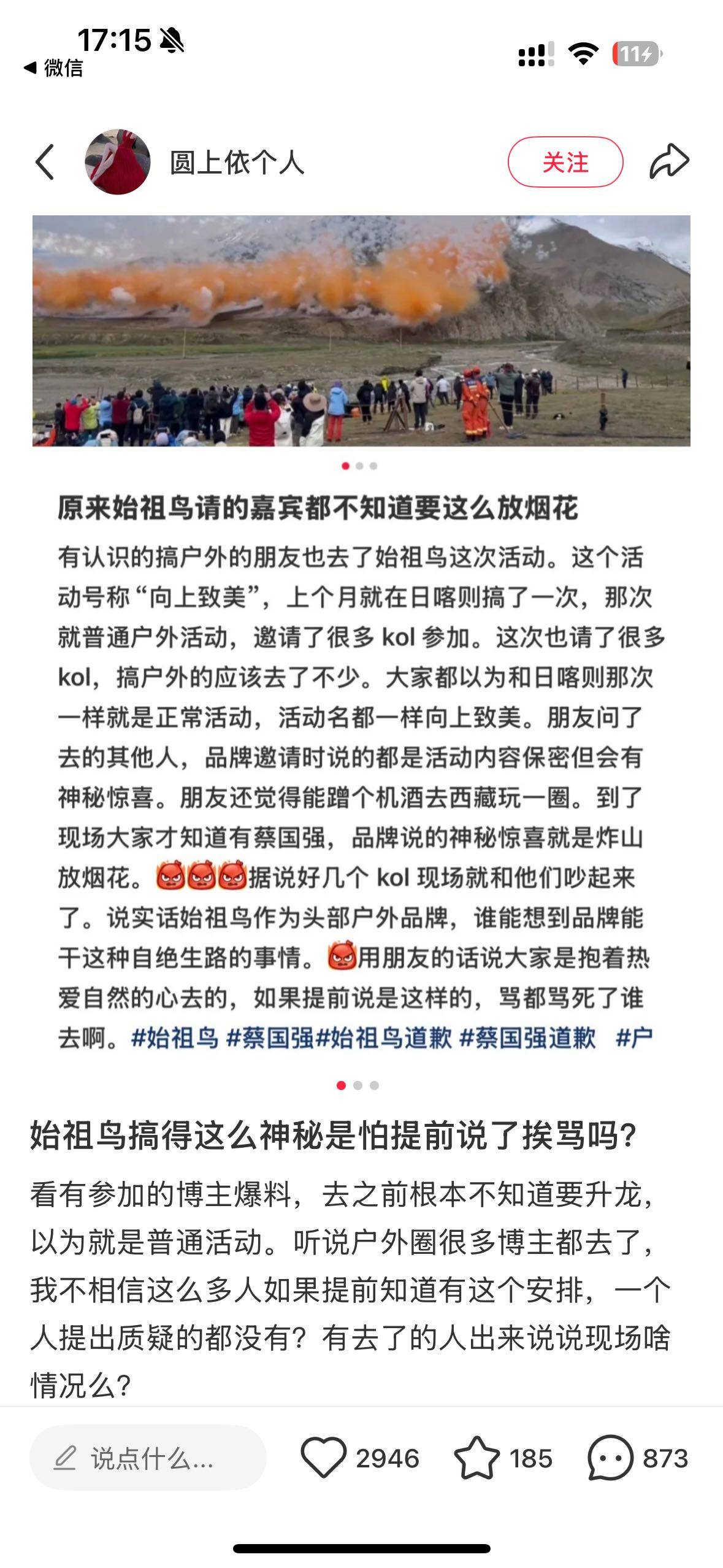 而复盘整个事件发现,水哥疑似被“坑”。据知情网友表示:品牌邀请时说的是活动【具体】内容保密,但会有神秘惊喜。谁知这个神秘惊喜就是炸山放烟花!事情发生后就有好几个 kol 现场和品牌方吵起来了,怪不得【几百个kol去了没几个】发现场图。