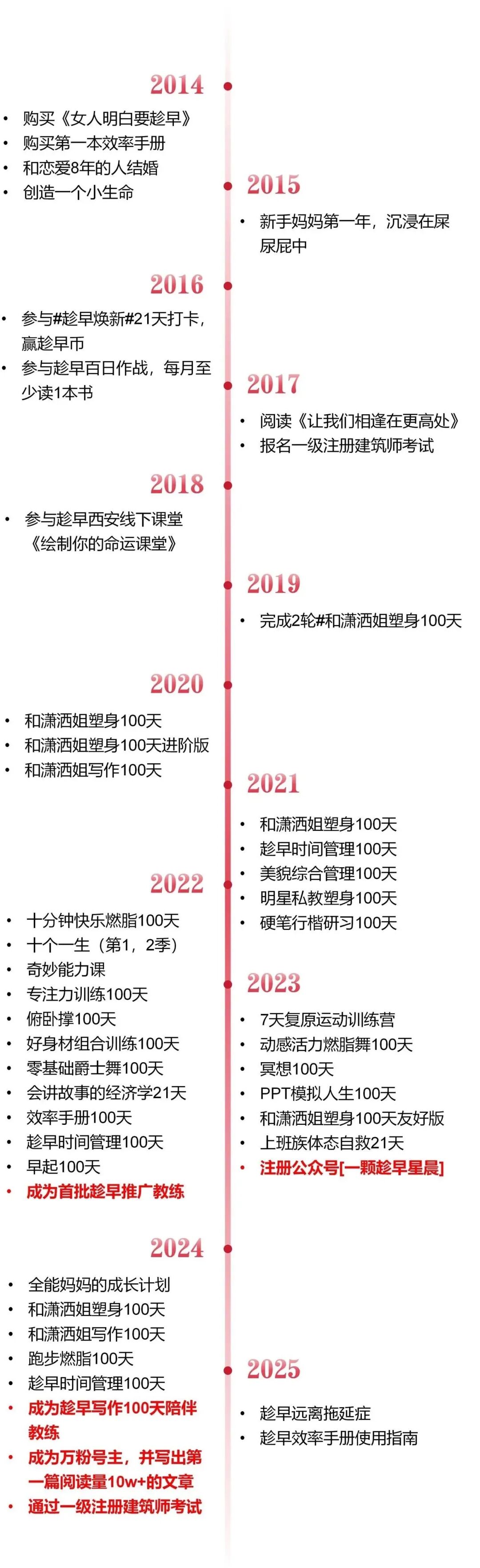 · 在公众号上,星晨分享了自己的“趁早时间轴”