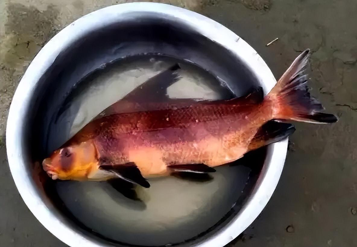 这条鱼身体呈现出独特的红色,尤其是在鱼鳍部位,颜色更为鲜艳,看起来十分罕见。