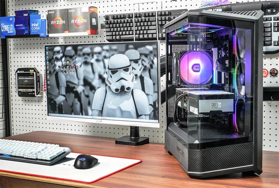 金色装饰件搭配带ARGB灯效的启世之环信仰灯,颜值不错。