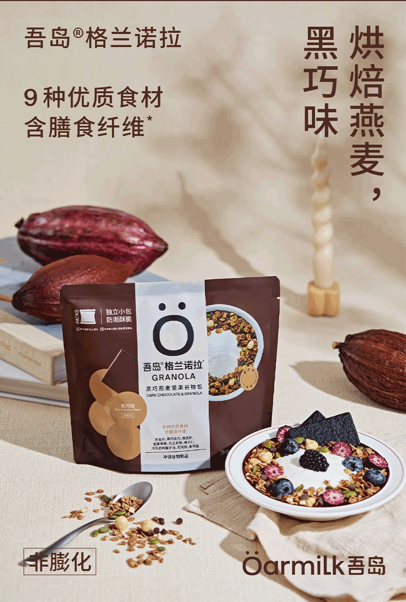 我的私藏吃法大公开 ✅“能量加油站” 开袋即食,解馋随手来一包, 酥脆饱腹2小时,元气满满。 ✅“美味酸奶碗” 搭配适量吾岛酸奶/牛奶根据自己的喜好 DIY不同食材,随心搭配,营养美味。 ✅“隔夜燕麦杯” 加入吾岛酸奶和水果、坚果 放进冰箱内冷藏一晚,隔夜取出即可食用