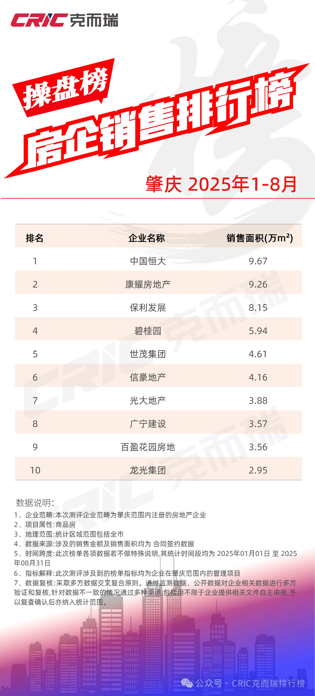 克而瑞所发布的新房销售榜单系以易居企业集团·克而瑞监测数据,官网公开数据为基础,企业年度公开数据及申报信息内容为补充,利用克而瑞第三方测评机构的行业优势和专业立场,通过多维度数据监测、多元化综合评判所生成的销量排行榜,为尽可能避免公开数据和监测数据的失真,实现信息核实之目的,对于未自主申报数据的部分企业,视情况不纳入榜单。克而瑞明确表示,上述榜单内容为独立见解仅供参考,克而瑞不对使用上述榜单及其内容所引发的任何直接或间接损失承担责任,且就榜单相关内容享有全部的解释权。