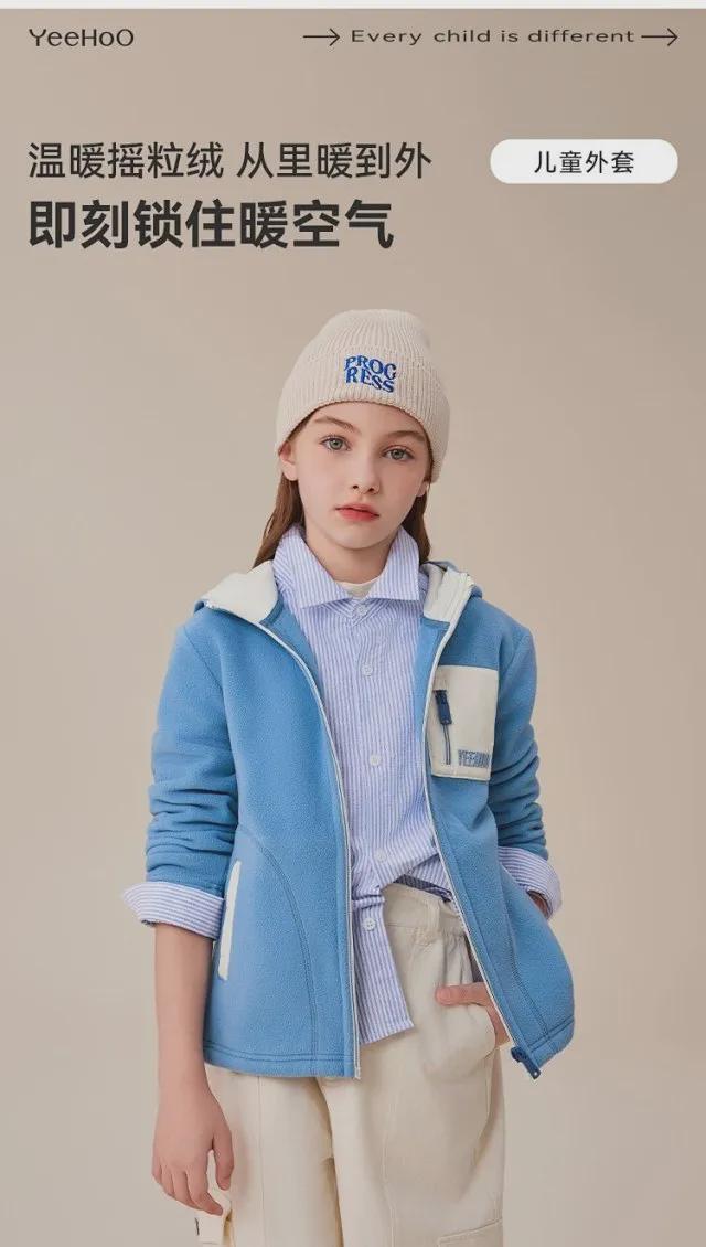 摇粒绒面料有聚热功效,给小朋友暖融融的守护。