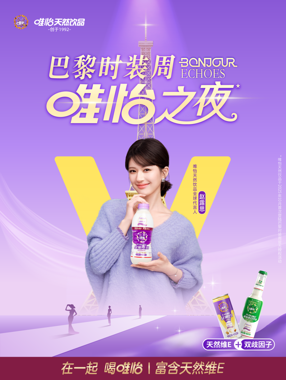 9月25日,唯怡天然饮品在巴黎地标——埃菲尔铁塔上宣布即将参与巴黎时装周。这一事件标志着唯怡品牌国际布局的重要一步,将于10月4日在布隆尼亚宫与三位华人设计师合作,共同呈现“BonjourECHOES回响”秀。唯怡以其“天然健康”的理念为核心,展示植物蛋白饮品的独特魅力,彰显中国品牌的时尚实力。
