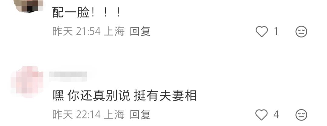 评论区里,网友们纷纷留言。有的说“很少见如此有夫妻相的夫妻。你俩看彼此会不会有照镜子的感觉?”她回复:其实有很多一样表情包的照片。不过不太敢发动图了。