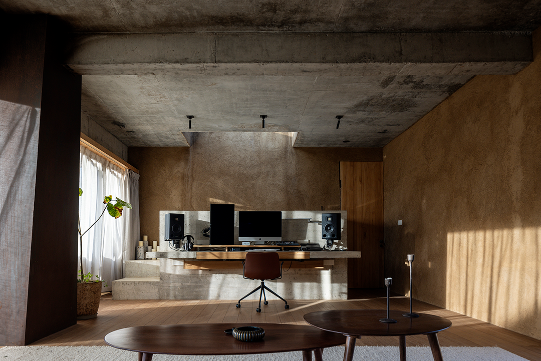 主卧下方打造成主客厅,平常小白可以通过一座内部楼梯直接来到这里,被光影、留白以及混杂着古镇气息的空气裹挟,又被轻盈地“推入”前方的平地与院落。