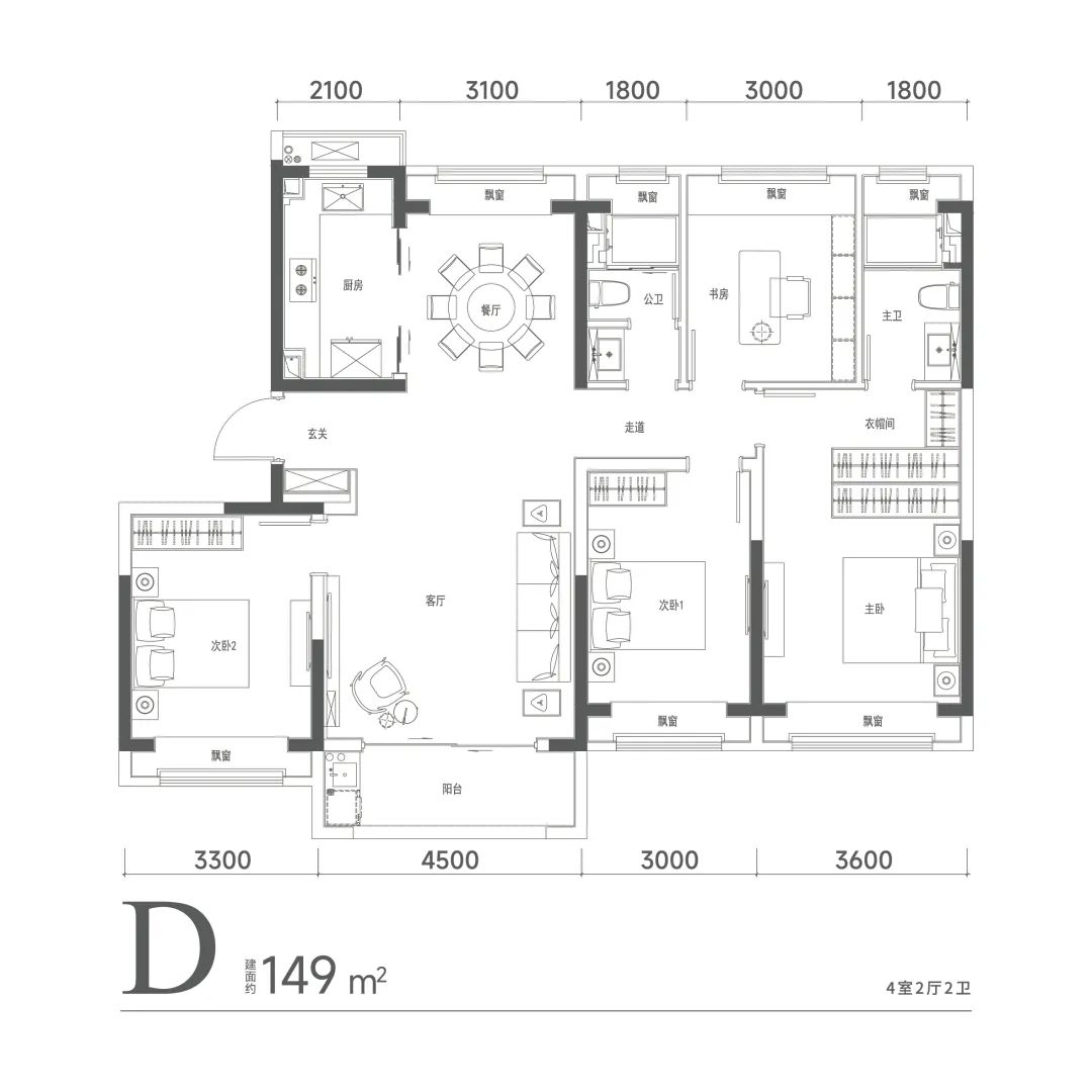 6个飘窗设置(不算面积)更很好延展了室内空间。