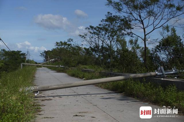 9月26日中午,封面新闻记者在从平冈镇前往埠场镇的乡道上见到,公路旁近2公里的公路倒伏了超20根电线杆,从贵州电网赶来支援的队伍正在抢修。平冈镇沿海村庄中的居民向记者表示,台风前一夜,在当地村干部的连轴转下,两镇沿海的村庄大部分已整村转移,台风过后,部分村民回到家中,房屋没有大的损失,但停电、断网了3天。