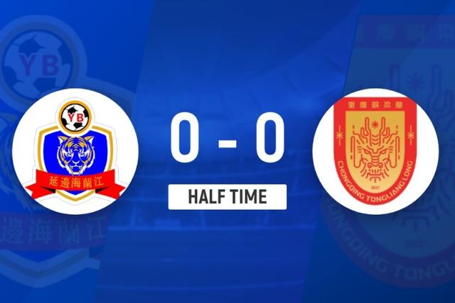 上半场比赛结束,延边龙鼎0-0重庆铜梁龙。