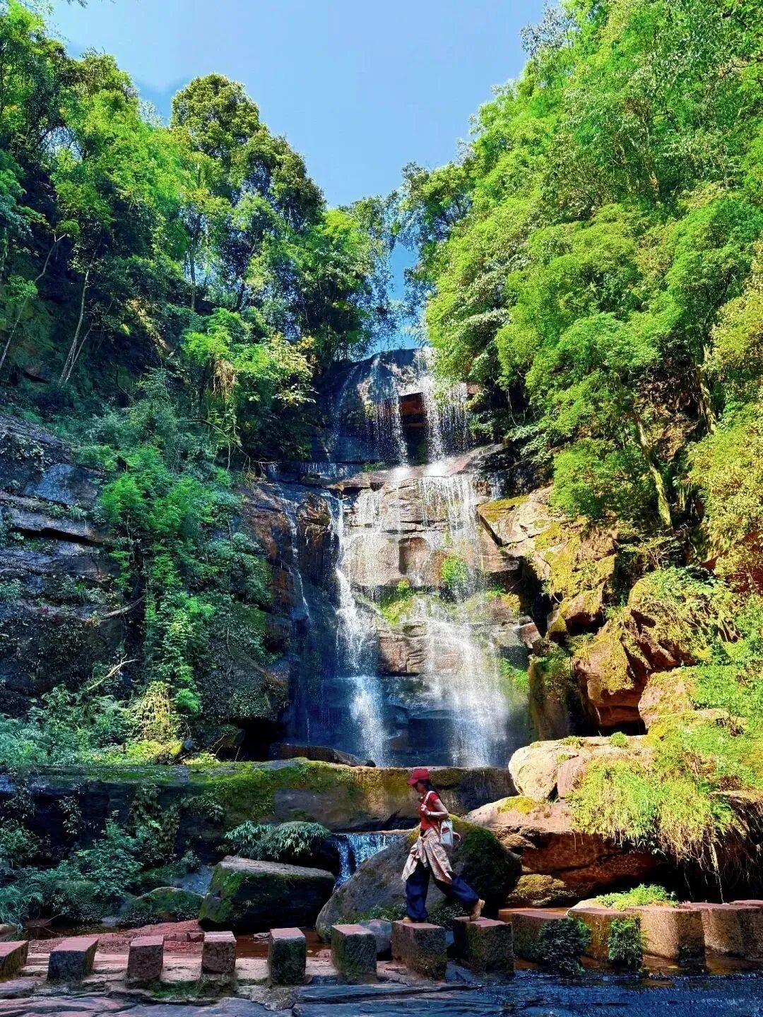 四洞沟景区位于赤水市大同镇,以四级形态各异的瀑布群、万亩竹海和丹霞地貌闻名,这里既能体验瀑布的磅礴与清凉,又能感受竹林的静谧与诗意。景区是以大同四洞沟瀑布群及其附近的天生桥、渡仙桥、清代节孝石坊为主,包括两岔河秀色、华平瀑布、大水沟瀑布、石鼎山奇石、方碑云海、大同竹溪、大同古镇等景观,被誉为“万竹之园,小家碧玉,没有败笔的景区。”