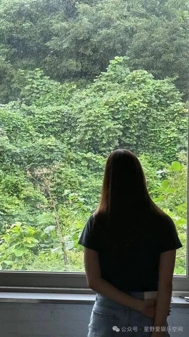 一扇窗户外,满是一片郁郁葱葱的树木,而专业的麦克风设备,则显示这是一张在录音室拍摄的照片。