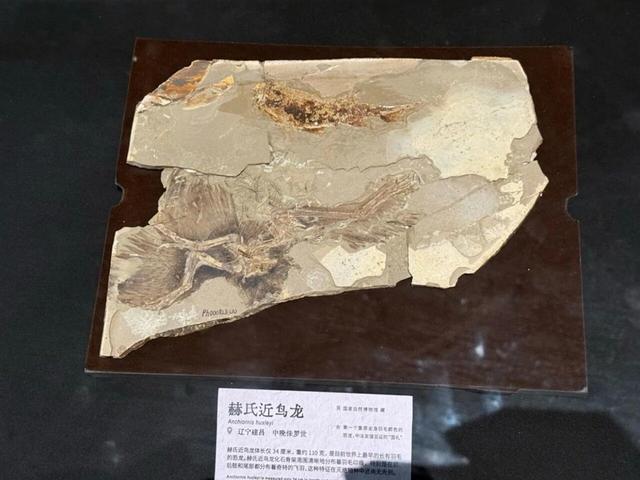 上海自然博物馆B1临展厅正在展出的赫氏近鸟龙化石