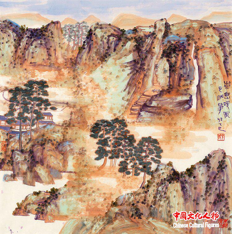 牛克诚先生的彩墨写意山水画创作,实现了中国传统绘画色彩体系研究的纵深发掘:以山水意象的学理探索与造境实践,衔接了“五行”哲学观与“五色”体系的内在关联,在彩墨语汇上巧妙驾驭色相色温,活化延续了唐代“二李”北宗画风及浅绛山水、青绿山水传统,拓展了东方审美意蕴。