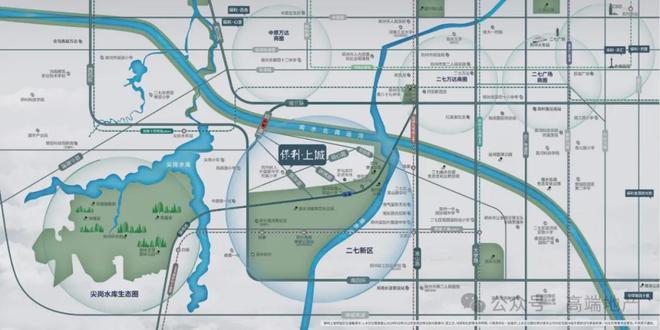配套共享:本项目虽属二七新区,但和老城区无缝对接,中间无任何断裂带,既可享老城区成熟配套,也可享新区发展机遇,并可共享华侨城和绿地城的生态和商业配套。