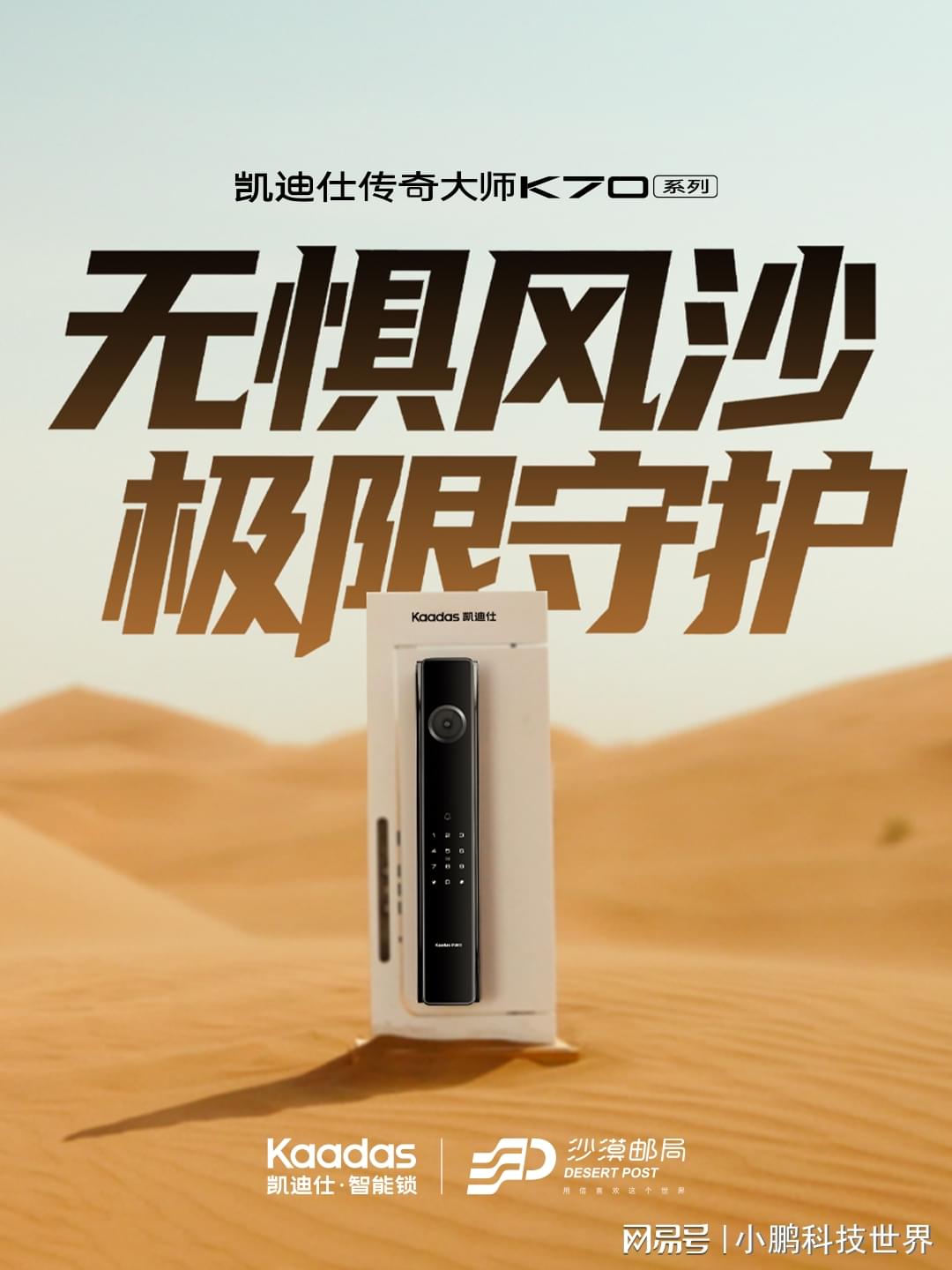沙漠邮局,在一年有150多天风沙侵袭、40℃以上的巨大温差、以及近乎残酷的暴晒与严寒的腾格里沙漠,常年坚守着。也因此发起了沙漠场景产品性能挑战——「耐撕挑战」。凯迪仕此次应邀加入,与沙漠邮局展开跨界合作,在无人之境的极限试炼中,用实力表现凯迪仕门锁无惧风沙的极限守护力。