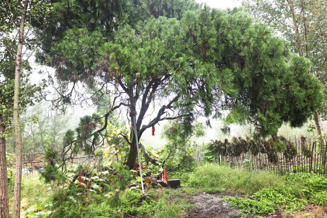 路口往右拐有一条小路,因下雨而有些泥泞,走上十几米便能看见一棵“奇怪的树”——一棵枯朽的槐树洞里,长出了一棵松树。松树郁郁葱葱,生机勃勃,被村民们称为“槐抱松”。“这树快100岁了,树后面原来是座龙王庙,后来拆了,秦鸿钧小时候就随父母住在庙里。”世和庄村党支部书记、村委会主任周浩然回忆着,在树下给我们讲起了世和庄村的历史。