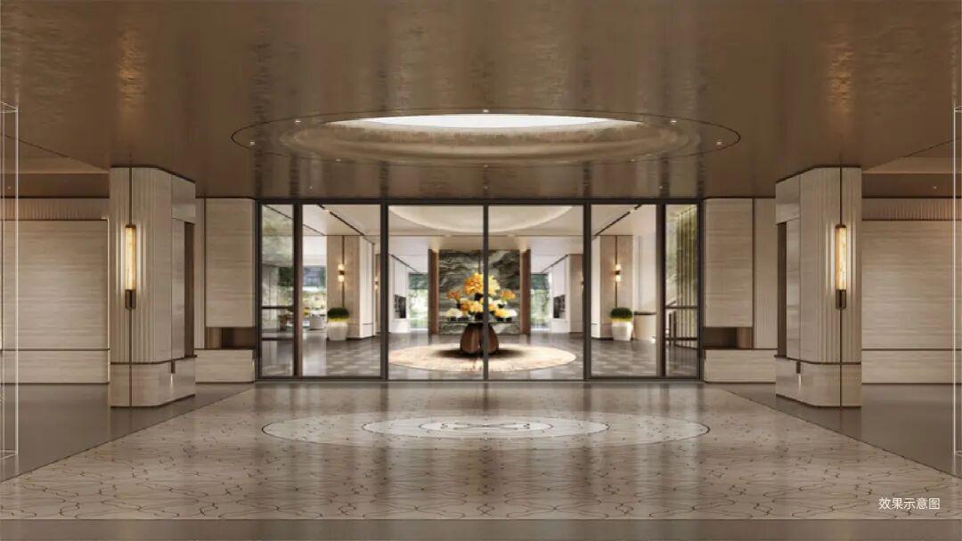 近110米城市旗舰门厅,约7.8米奢阔高度,专属环岛落客区,构建一体化城市界面,给予无限的尊崇感和仪式感。