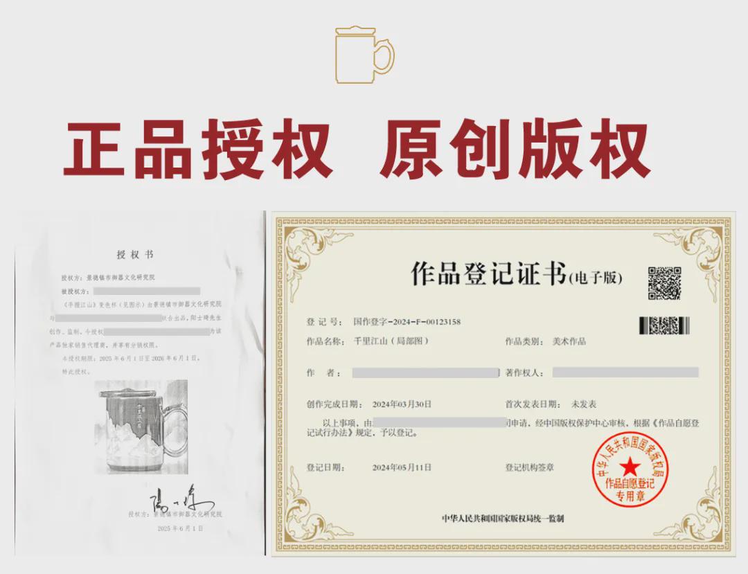 《手握江山》珍藏版温感杯,每套均配有出品证书,喜欢的朋友一定要认准官方正品。