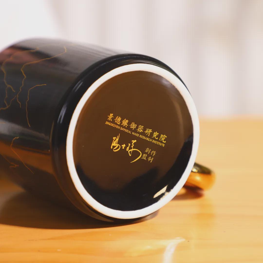 变色前,通体黑色,釉色浑厚,杯子上只有数根金色流畅的线条,乃高山的轮廓,散发内敛奢华气质。