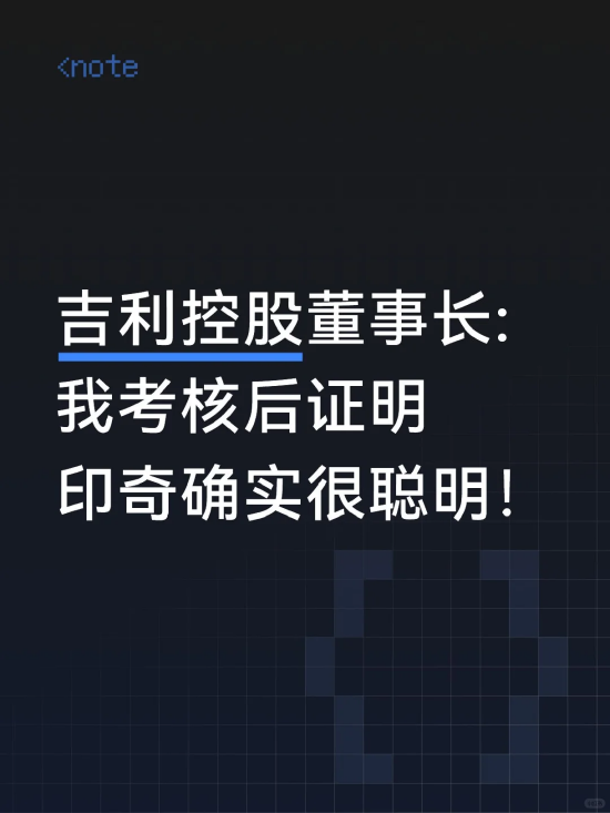 李书福用“一见如故”“相见恨晚”“一拍即合”三个成语形容二人相识,更在现场直言:“未来是属于你的。”作为股东方代表,他当场释放对印奇“充分授权”的信号,并表示:“在人工智能时代,我相信印奇一定会大有作为,一定如鱼得水,如虎添翼。”