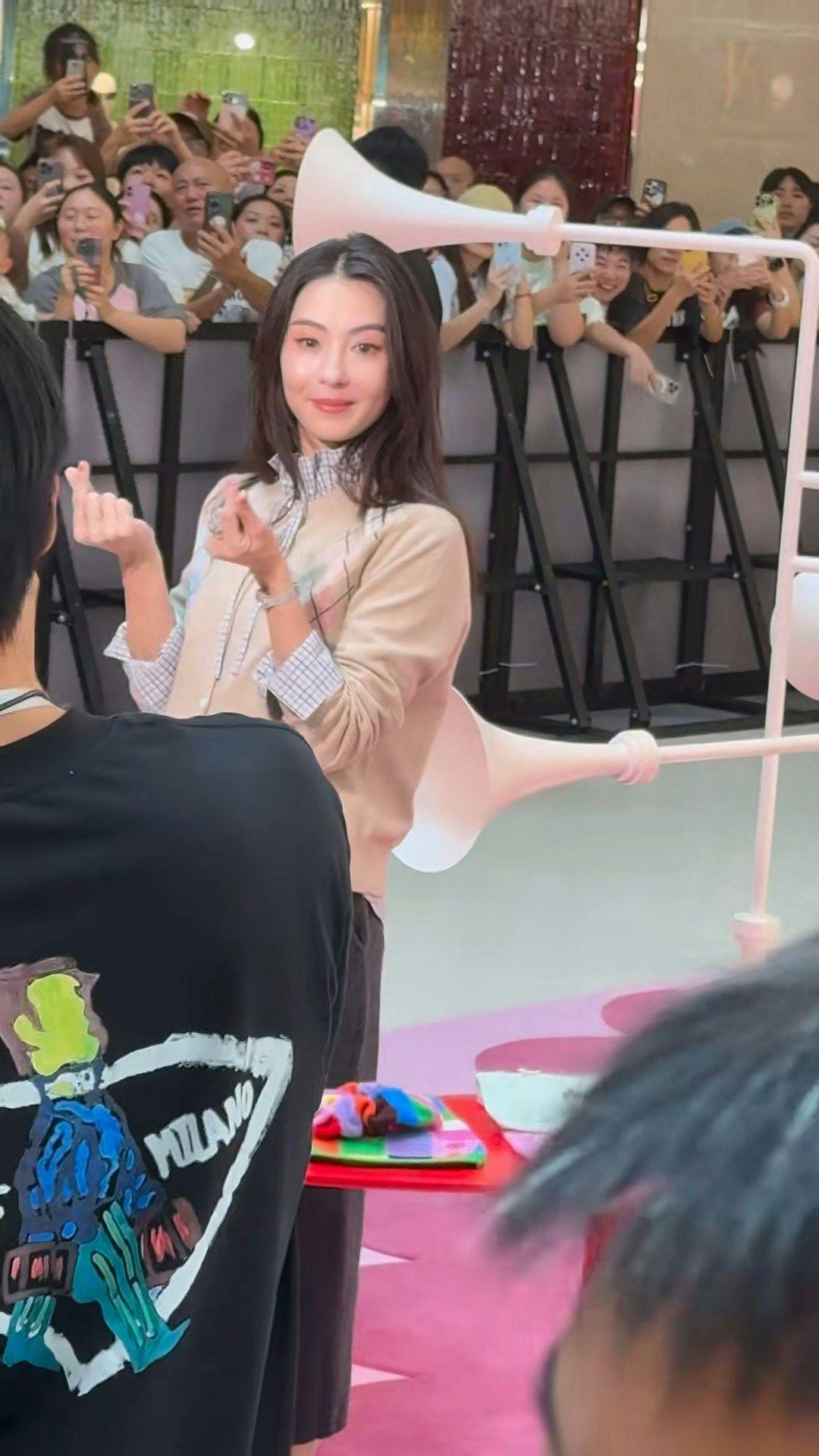 45岁的张柏芝近日出席品牌活动时展现出惊人状态。她身着高领格纹衬衫搭配毛衣,黑色中分长发自然垂落,全程保持微笑并向现场粉丝送出飞吻。现场围观群众纷纷举起手机记录她的风采。