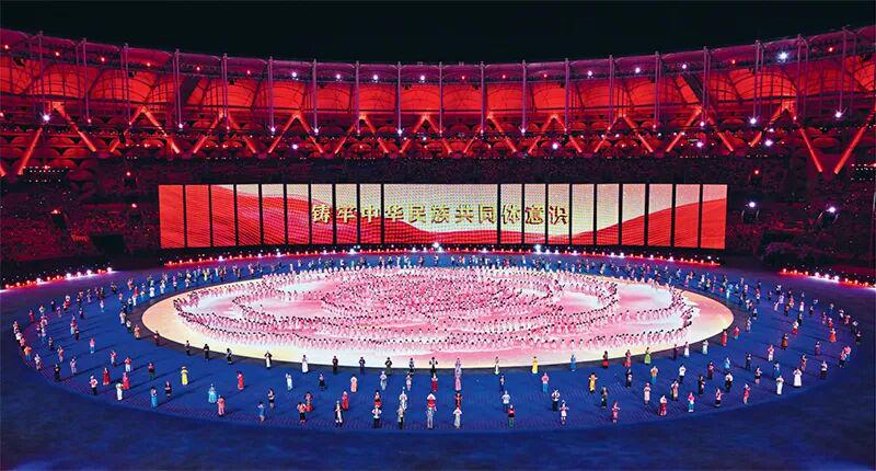 2024年11月22日至30日,第十二届全国少数民族传统体育运动会在海南省三亚市举行。自1953年11月首次举办以来,该运动会已成为我国各民族团结交流的盛会。通过运动会搭建的广阔舞台,铸牢中华民族共同体意识不断深入人心。图为2024年11月22日拍摄的开幕式现场。 新华社记者 郭程/摄