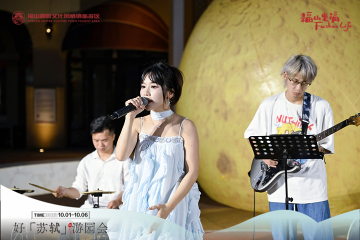 华灯初上,“月下音乐会”成为全场焦点。专业歌手将苏轼的诗词重新编曲,用现代音乐的方式进行演绎。古典诗词的意境与流行音乐的旋律交织,为现场观众带来了一场听觉盛宴,将游园会气氛推向高潮。