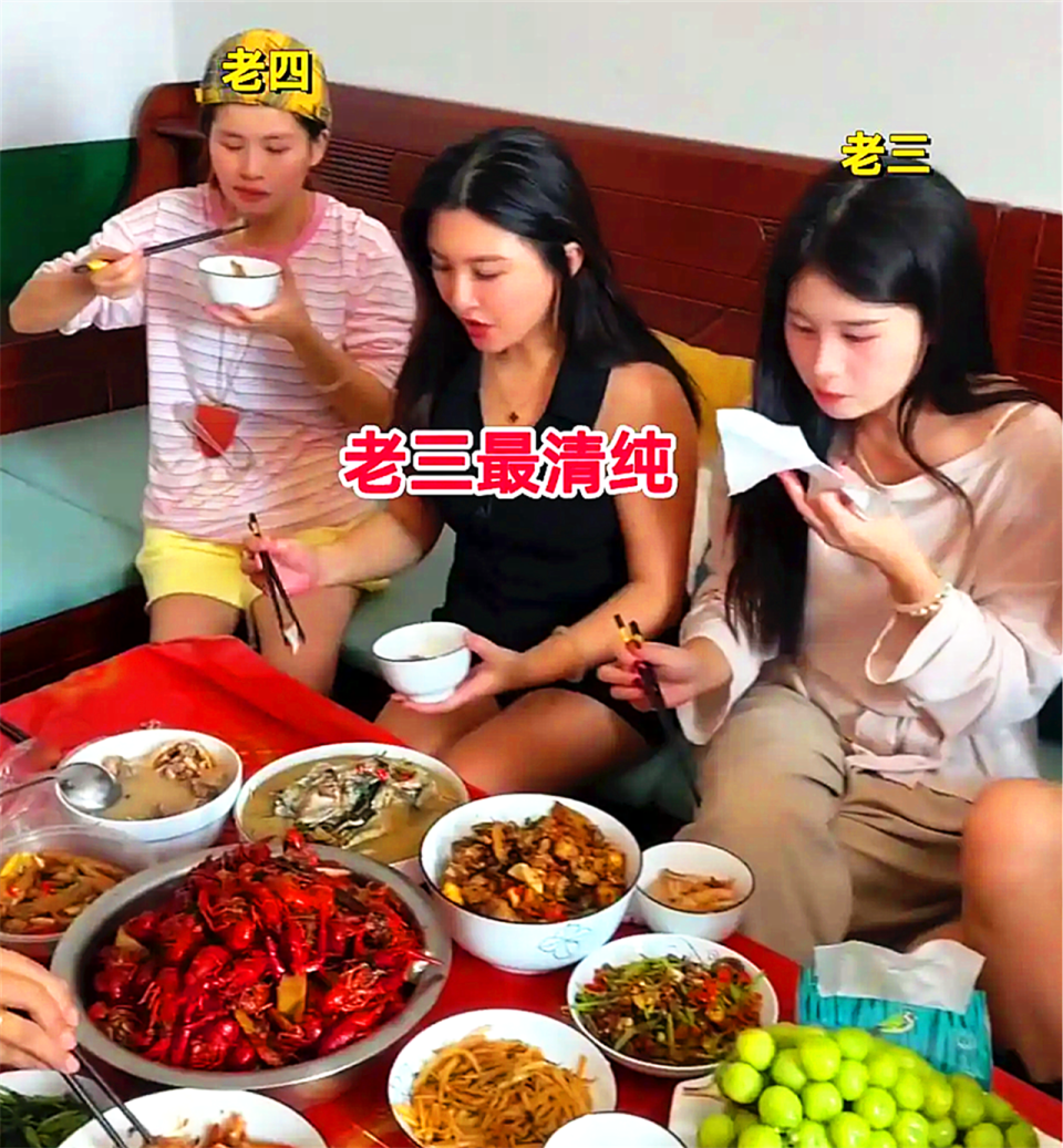 7 个女儿各有各的惊艳,凑在一起像幅鲜活的美人图。老大站在桌边最是惹眼,她正端上来满满一盆小龙虾。鹅黄色吊带衬得肤白胜雪,牛仔短裤遮不住身材的窈窕曲线,活脱脱 “上得厅堂下得厨房” 的俏模样。浑身上下透着青春气息,活力逼人,谁能想到她已是三十多岁的年纪?