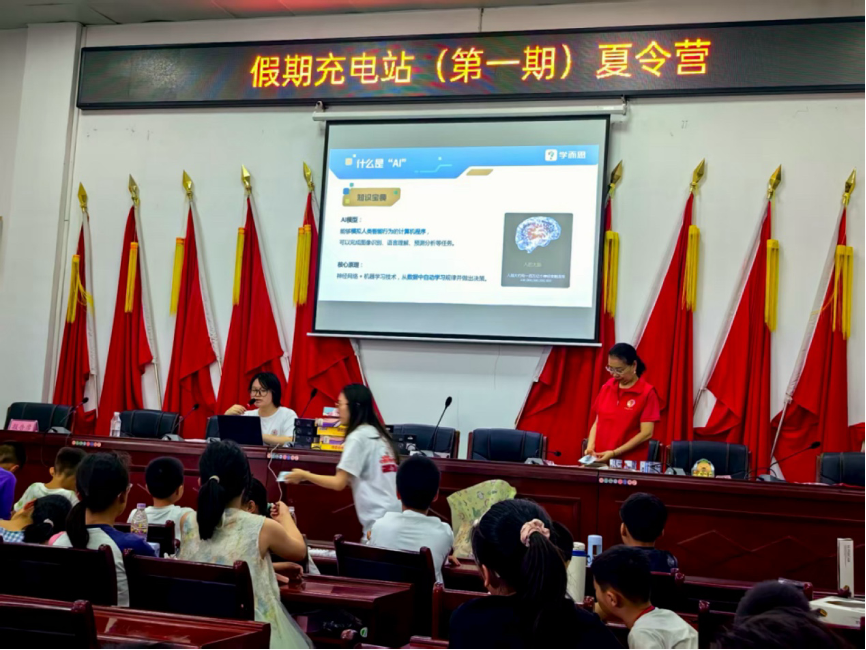 无论如何,先从能做的做起。7月11日下午,我们实践团在杨林乡的一间会议室为当地招募的60名留守儿童带来了一场“AI启蒙课堂”。我们精心设计了课程内容,深入浅出地介绍了人工智能的基本概念、应用场景及其对未来生活的深远影响。