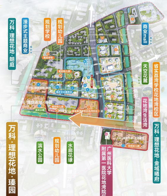万科理想花地瑧园位于广州荔湾区花地湾,是未来“产、商、住”一体化的新城市中心。该区域被规划为国家战略支点和湾区极点辐射的重要节点,具有巨大的升值潜力。